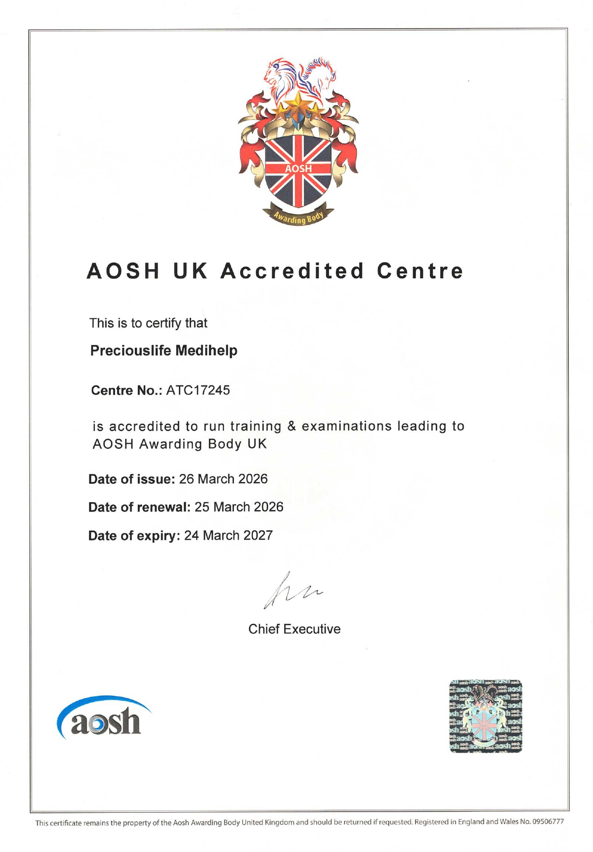 & First Aider Card on the same day